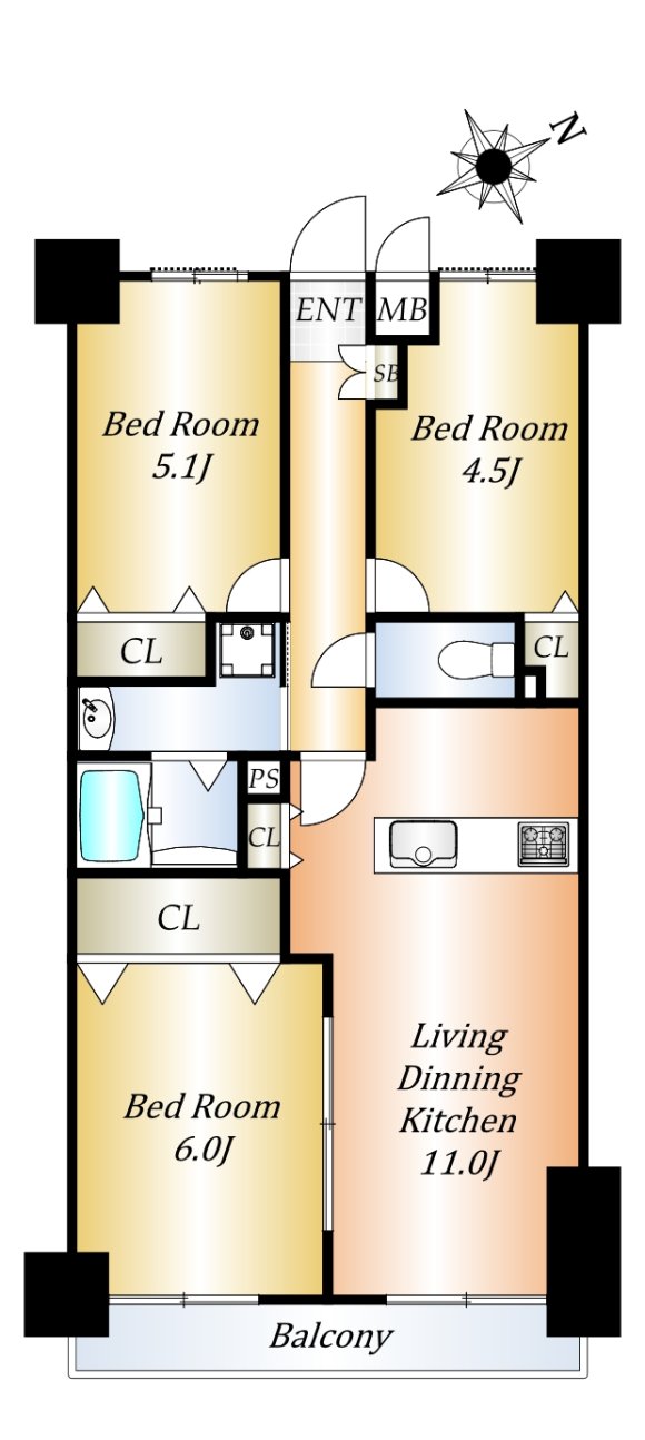 | 間取 | 3LDK〜3LDK |